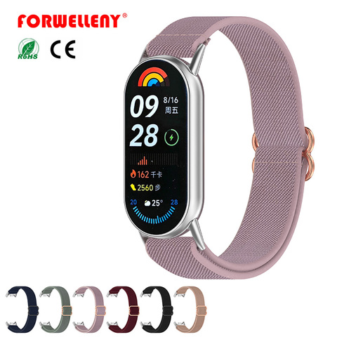 Forwelleny 2025 도매 Xiaomi 밴드 8 9 10 금속 커넥터 모델 Smartwatch 액세서리에 대한 신제품 물결 모양의 나일론 루프 스트랩